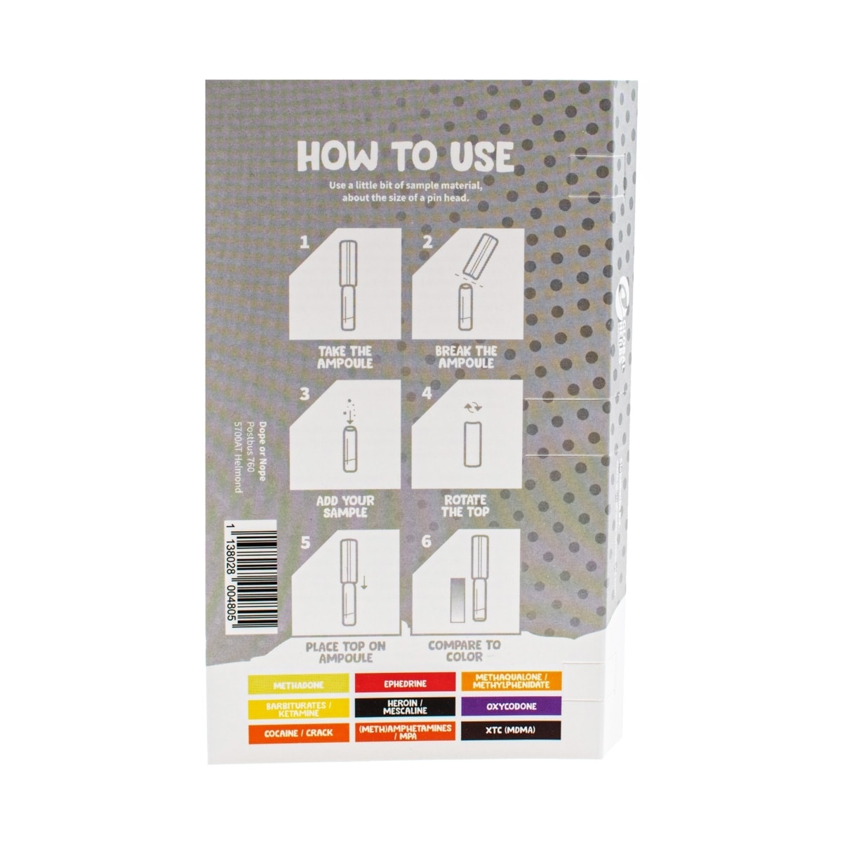 Drogové testy Dope or Nope jsou rychlé a spolehlivé testy na drogy, které identifikují různé typy drog na základě konkrétních zabarvení. Jedná se o jednorázový test s velmi snadným použitím. Výsledek se dozvíš během několika sekund. Test je spolehlivý, bezpečný a snadno se používá.