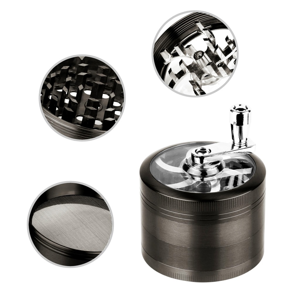 Kovová drtička s klikou – Černá – 4 části – 60 mm