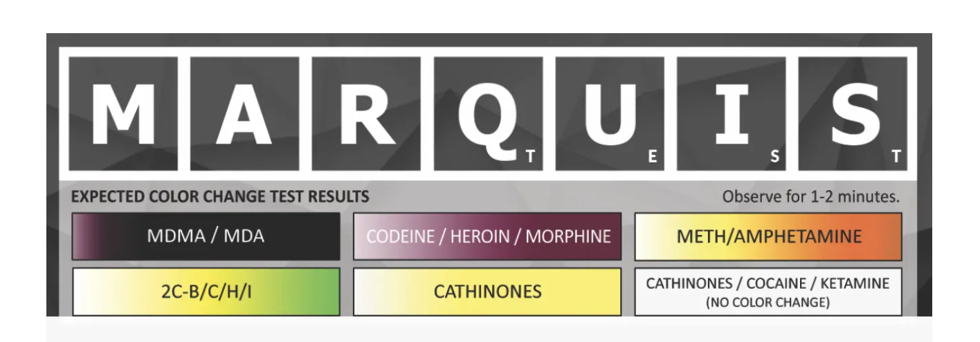 Pro přesné zjištění všech složek a jejich množství doporučujeme kombinovat testovací sadu Marquis s TLC testovací sadou čistoty. TLC testování umožňuje odhalit všechny přísady a odhadnout jejich množství. Pro detekci i stopového množství fentanylu použij fentanyl testovací proužky.
