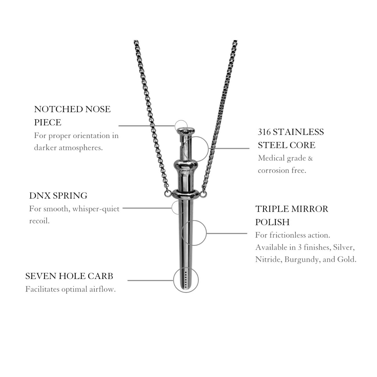 SNOGO se pyšní jádrem z nerezové oceli 316 odolným proti korozi, které se hladce pohybuje v trojitě leštěném vnějším plášti. Interní pružina DNX zajišťuje hladký a téměř neslyšný pohyb, zatímco 7-jehlový karburátor umožňuje optimální průtok vzduchu pro hladké a bezproblémové dávkování. SNOGO lze snadno rozebrat a přeměnit na designovou trubičku a samostatnou, elegantní lžičku.
